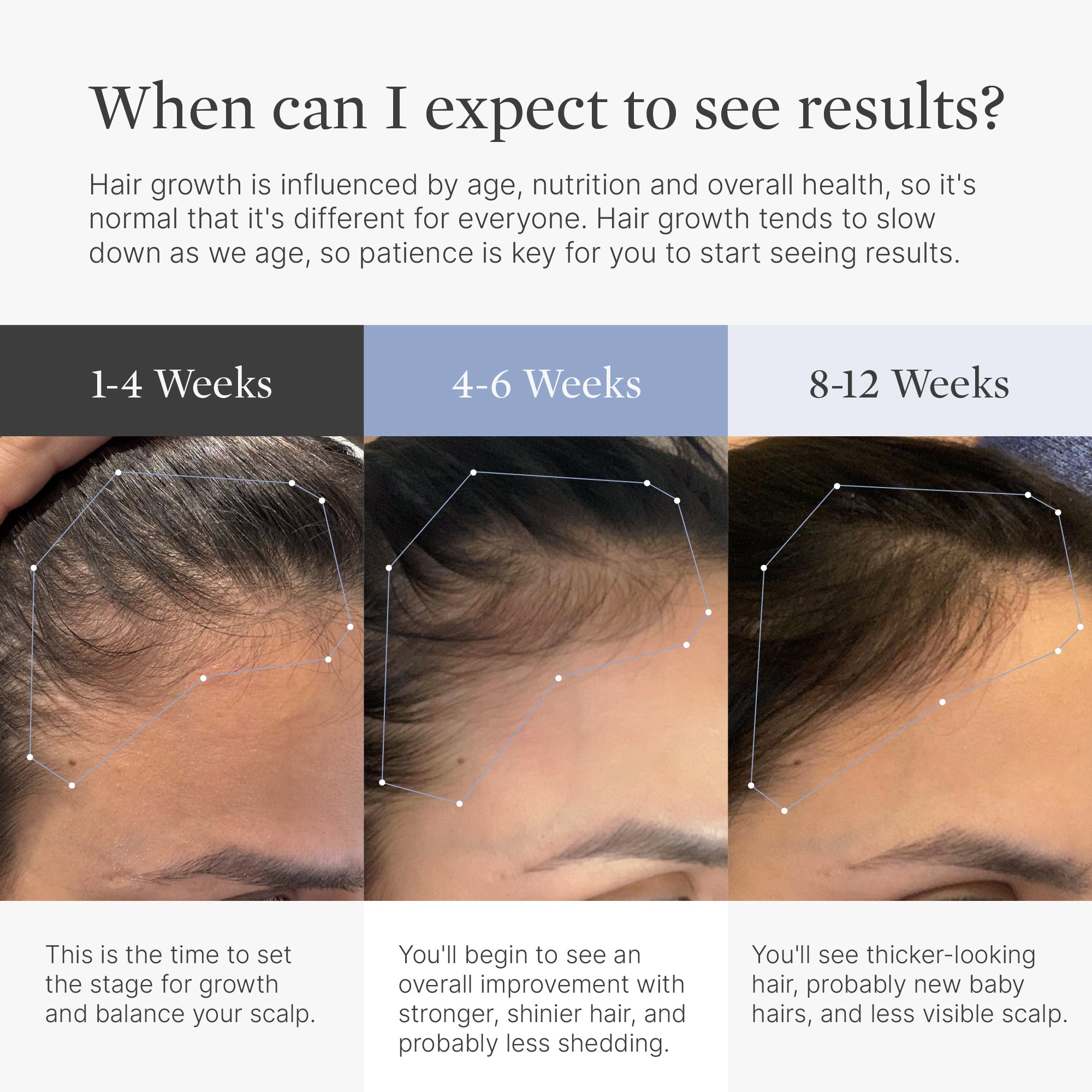 You will achieve the best results if you use our serum every day. The time it takes to deliver benefits and visible improvements varies depending on your hair’s starting condition, however results are typically seen in as few as 8 weeks.