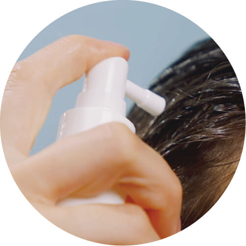 — Using the precision nozzle, spray formula on wet or damp hair at the roots in areas where hair is thinning and at regular hair parts.