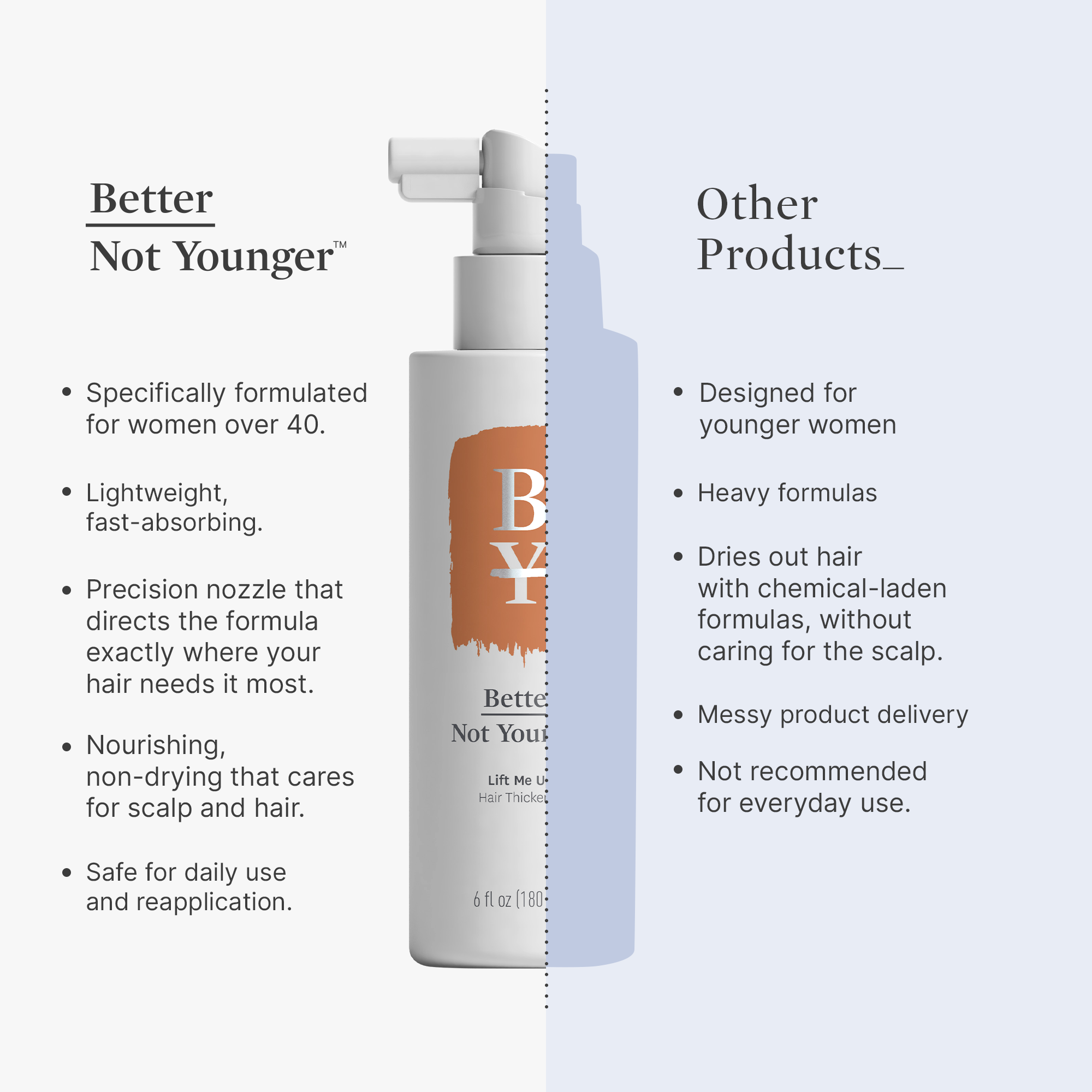 Note: Our formulas are specifically designed to help your hair improve with age for Better Hair Ahead